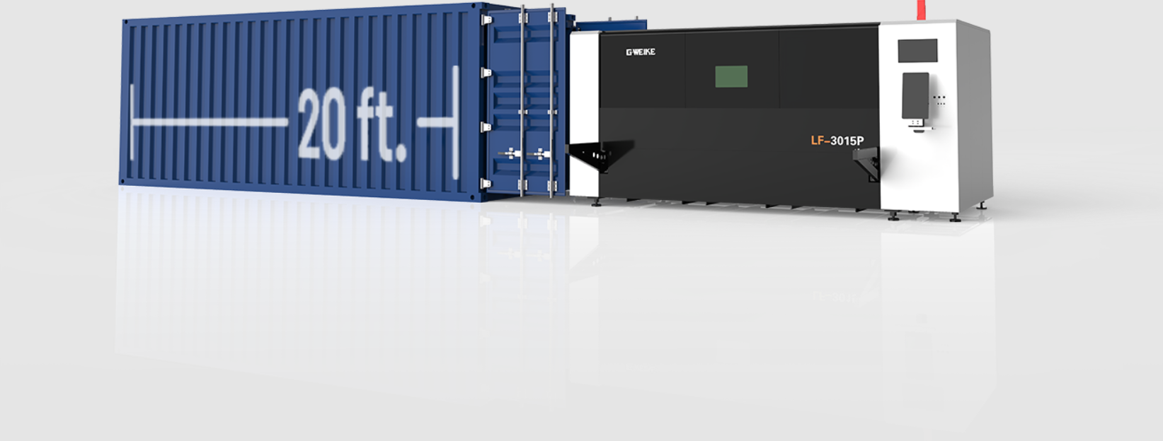 The machine features a compact, integrated design with a built-in control cabinet and laser source. This setup reduces freight costs, shortens installation time, and fits conveniently into a 20-foot container for easy transport.